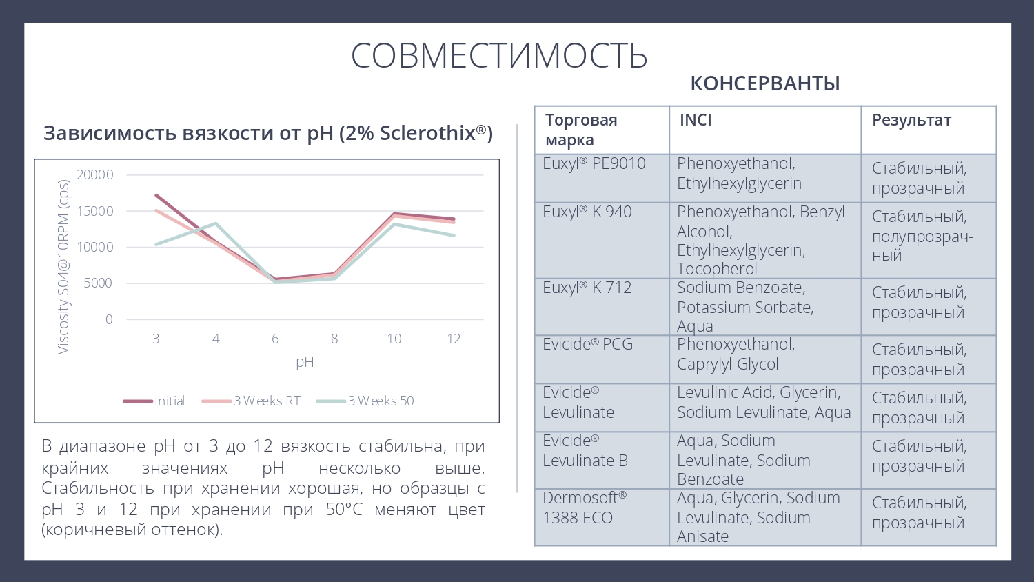 Sclerothix является эффективной добавкой для улучшения суспендирования (подвешивания) различных частиц - скрабов, глин или пигментов, в том числе в составе моющих систем.